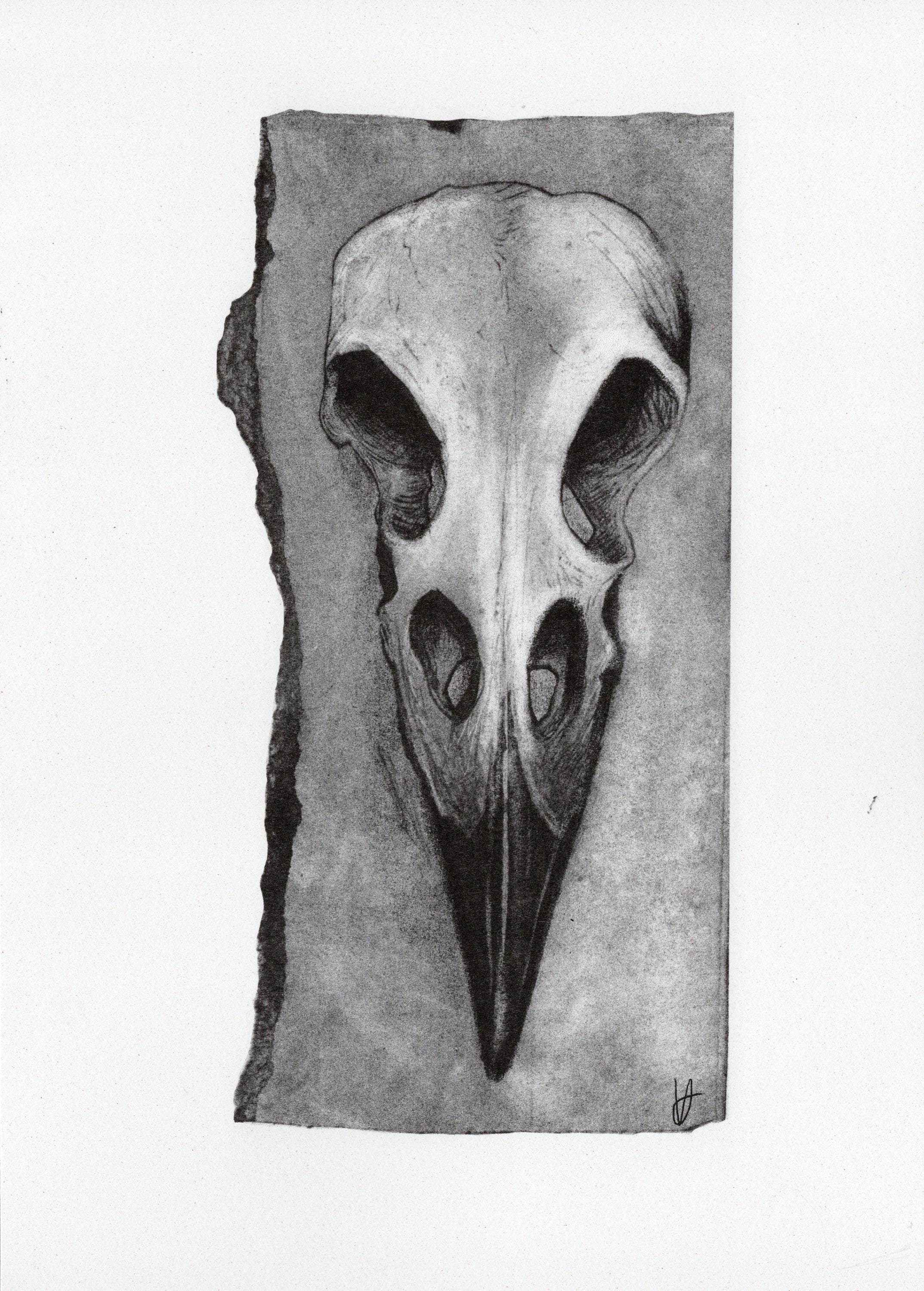 A4 limited edition risograph print produced from a tetrapak print of a crow skull replica, printed using vegetable-oil based ink onto eco paper. This is an edition of thirty prints onto 160gsm eco paper.
