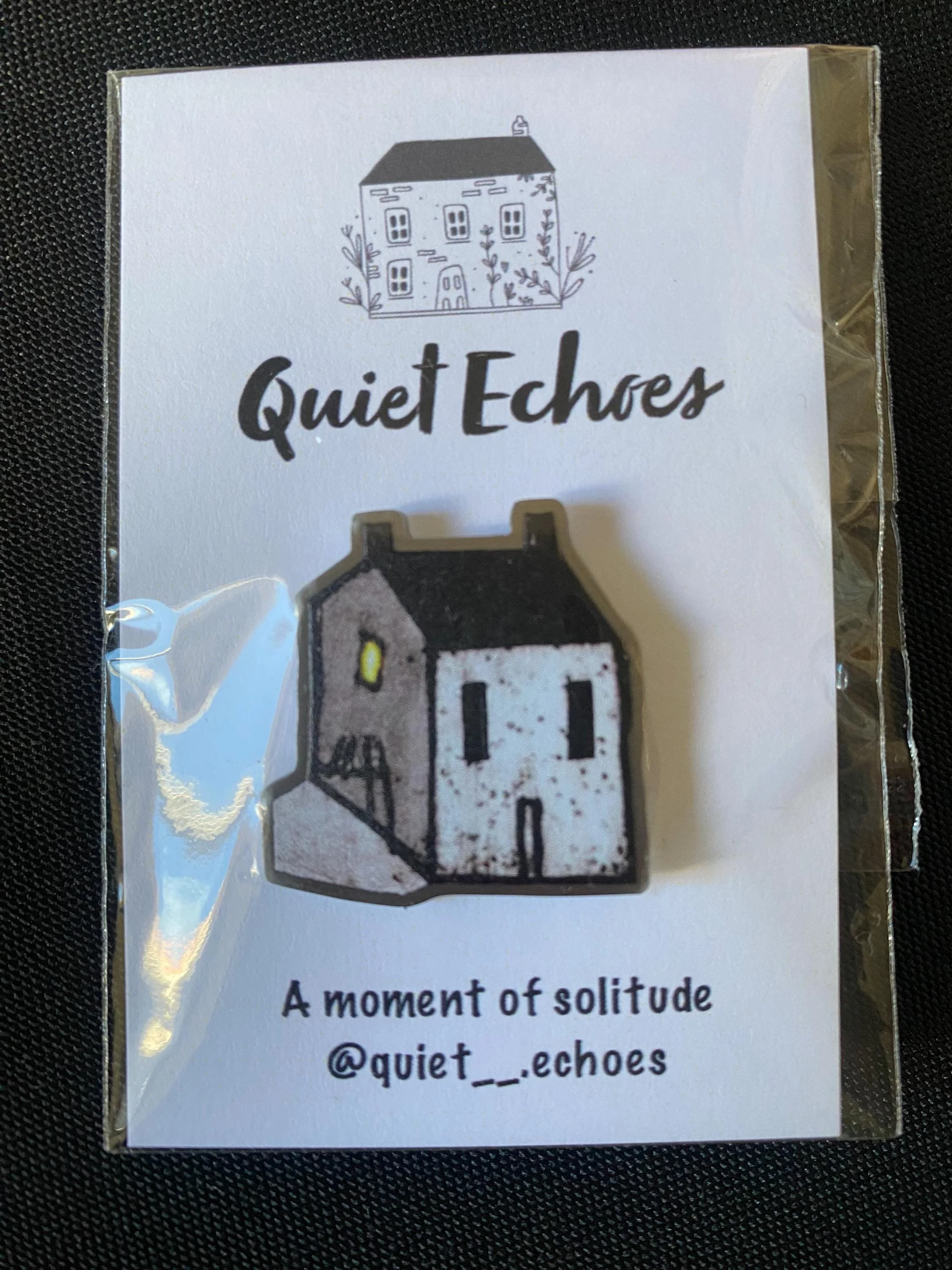 I designed these pin badges using my favourite 'house' prints, and they are intended as a gift to yourself or someone else to remind them to take a pause; a moment of solitude in our busy times!