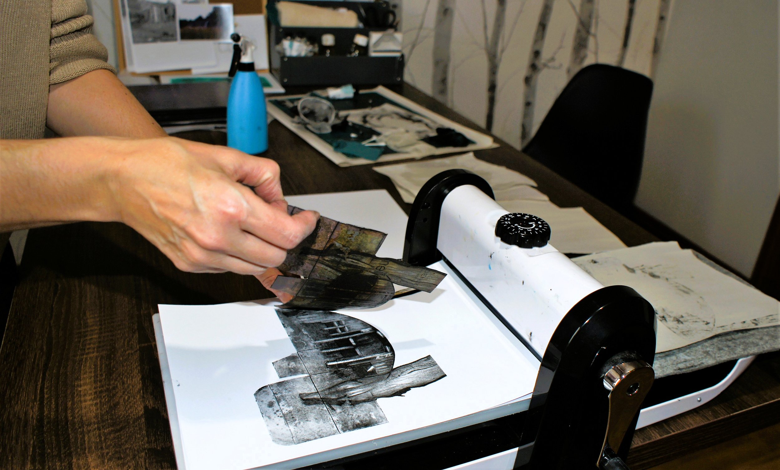 The Japanese notion of ‘wabi-sabi’ is central to her art practice, which celebrates beauty that is imperfect, impermanent, and incomplete and the narrative of everyday and forgotten places inspires her to record these places using sustainable printmaking practices.